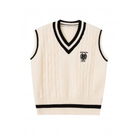 Cable V Neck Knitted Vest, Casual Sleeveless Vest For Spring & Fall, Women's Clothing