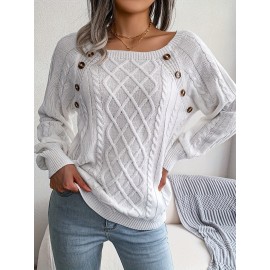 Cable V-Neck Sweater Vests, Casual Loose Sleeveless Fall Winter Knit Sweater Vest, Women's Clothing