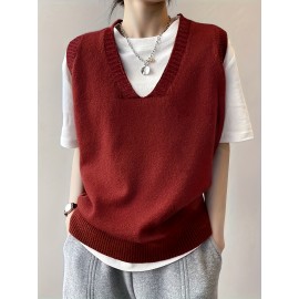 Twist Pattern V Neck Sweater Vest, Y2K Sleeveless Vest For Spring & Fall, Women's Clothing